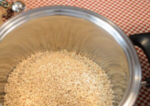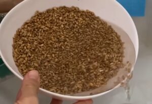 - Priprema pšenice (24 sata ranije): Isperite pšenicu nekoliko puta u hladnoj vodi. Potopite je u velikoj činiji sa dosta vode i ostavite da stoji 24 sata na hladnom mestu. Možete promeniti vodu jednom tokom dana.