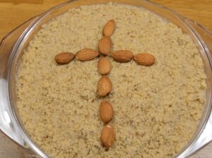 - Dekoracija i serviranje: Prebacite koljivo u posudu za serviranje. Poravnajte površinu, pa dekoršite mlevenim orasima, oblikujući krst ili drugi uzorak u skladu sa prilikom.